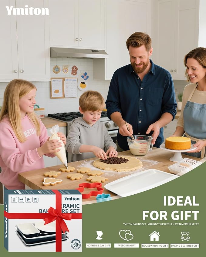 • 30 PCS COMPLETE CERAMIC BAKEWARE SETS: Includes essential bakeware for all baking needs, cookie sheets, round cake pans, loaf pan, muffin pans, and roasting pan - perfect for cakes, cookies, muffins, roasting, and sheet pan dinners, 24 cupcake liners for baking, ideal for multi-tasking in the kitchen