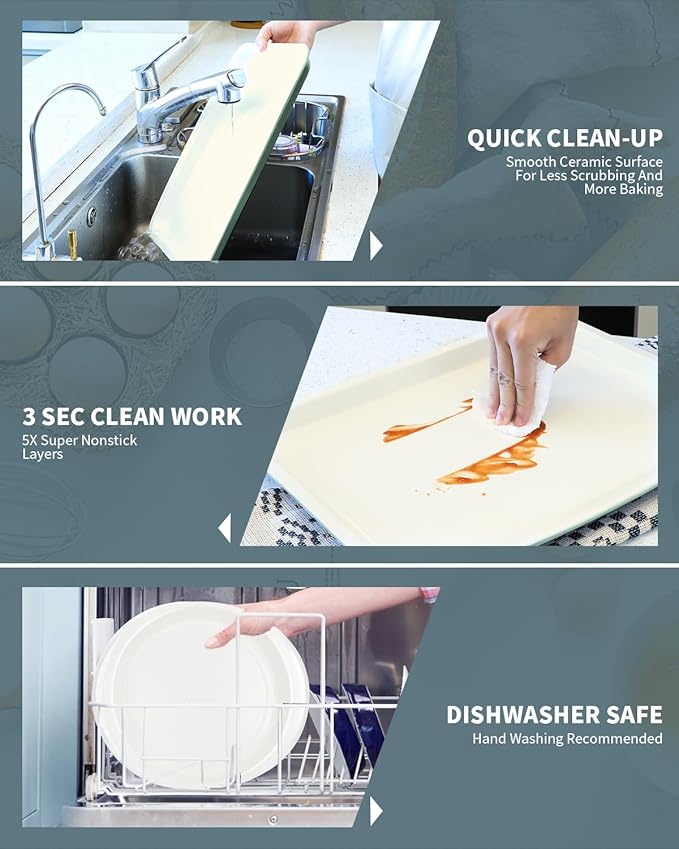 • 30 PCS COMPLETE CERAMIC BAKEWARE SETS: Includes essential bakeware for all baking needs, cookie sheets, round cake pans, loaf pan, muffin pans, and roasting pan - perfect for cakes, cookies, muffins, roasting, and sheet pan dinners, 24 cupcake liners for baking, ideal for multi-tasking in the kitchen