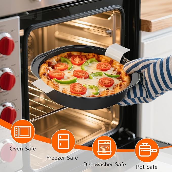 • Multi-Purpose: The cake baking pan can easily handle foods such as baked cornbread, brownies, cakes, meat, sourdough, vegetables, lasagna, quiche, deep dish pizza, fruit pies, desserts, pies, grilled steaks and ribs, and can also be used as a fruit, nut and snack container and serving plate.
