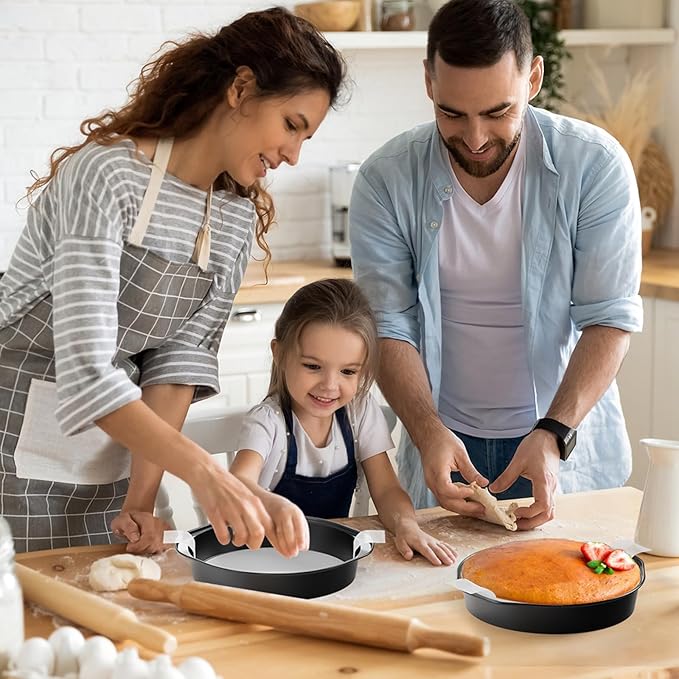 • Convenient Handle: The 8-inch cake pan features ergonomically designed curved handles that perfectly conform to the curve of your palm, providing a comfortable and natural grip, making it easier to load and unload from the oven. This design effectively prevents burns and ensures the cake remains stable from oven to table, preventing damage to the cake from wobbling, making it easier to enjoy baking.