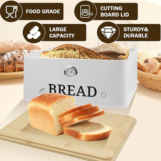 • Multi-functional Bamboo Lid: The removable lid allows the moisture in the bread to be released naturally, ensuring that the bread stays fresh for a long time. Flip the bamboo lid over and use it as a cutting board to cut bread and serve baked goods without worrying about crumbs on the table.