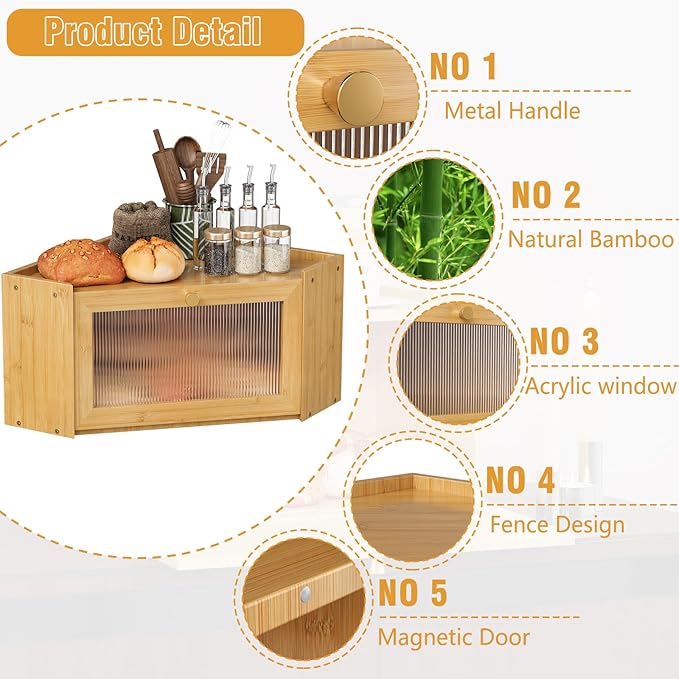 • Sturdy and Easy Assembly: The bread storage box comes with all the necessary accessories, a screwdriver, and easy-to-follow instructions for a smooth assembly process