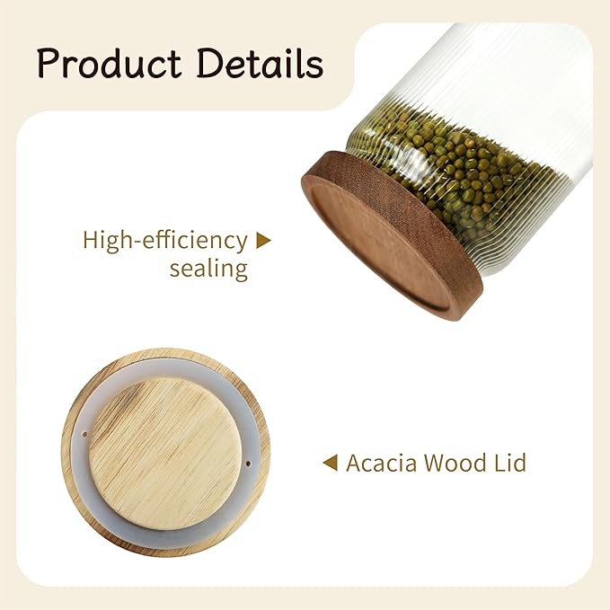 • SUPERIOR AIRTIGHT SEAL: Each jar features a premium Acacia wooden lid with a food-grade silicone ring, ensuring an effective airtight seal to keep contents fresh longer and protect against moisture.