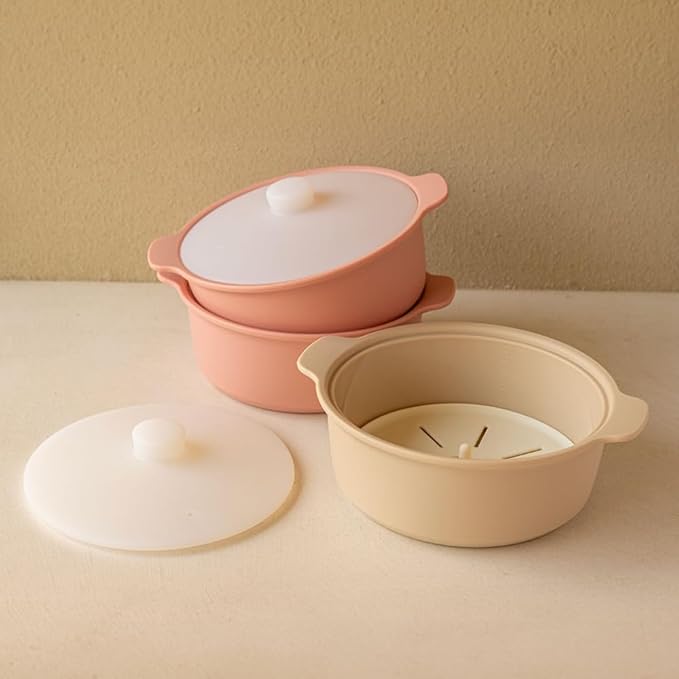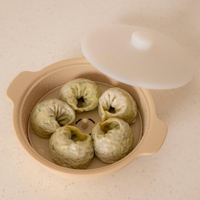 Microwave Silicone Steamer for Baby Food, Made In Korea, Oven & Dishwasher Safe to 482°F, Easy Clean, Microwave Pot with Handle & Lid, 100% Food Grade Steamer Bowl (Creme Brulee, 50.7oz (1500ml))