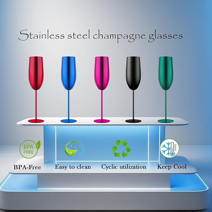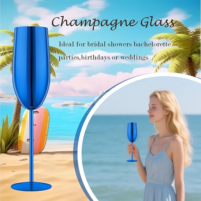 • Durable and sturdy: Our champagne flutes are made of food grade stainless steel material, the electroplated surface resists corrosion, ensuring they remain sturdy and unbreakable. Perfect for repeated use, these metal wine glass are ideal for any occasion