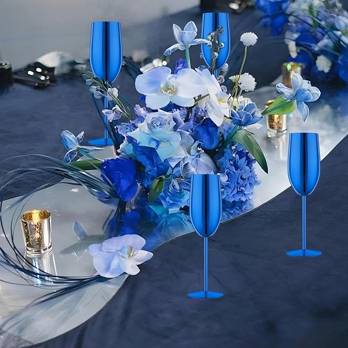Champagne Glasses Set of 2 Stainless Steel Champagne Flutes Wedding Gifts for Bride 8.5 oz Unbreakable Champagne Glasses for Party Wedding Christmas Anniversary Brithday (Blue)