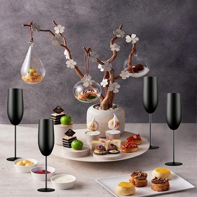 • Durable and sturdy: Our champagne flutes are made of food grade stainless steel material, the electroplated surface resists corrosion, ensuring they remain sturdy and unbreakable. Perfect for repeated use, these metal wine glass are ideal for any occasion