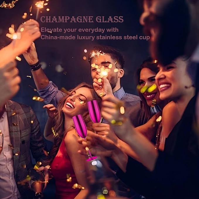 • Durable and sturdy: Our champagne flutes are made of food grade stainless steel material, the electroplated surface resists corrosion, ensuring they remain sturdy and unbreakable. Perfect for repeated use, these metal wine glass are ideal for any occasion