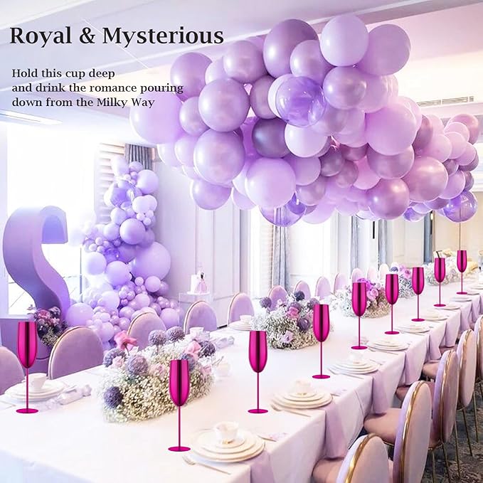 Champagne Glasses Set of 2 Stainless Steel Champagne Flutes Wedding Gifts for Bride 8.5 oz Unbreakable Champagne Glasses for Party Wedding Christmas Anniversary Brithday (Purple)