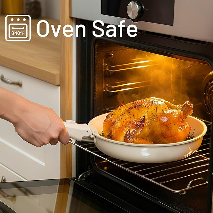 - 【BUSY KITCHEN SAVIOR】For the messy busy kitchen, our ceramic pans set are lifesaver, you won’t spend 10 minutes scrubbing burnt gunk; just rinse with soapy warm water, wipe with a towel, these cooking pots would keep brand new - Oven safe up to 840°F -Dishwasher safe, and Never get black residues issues.