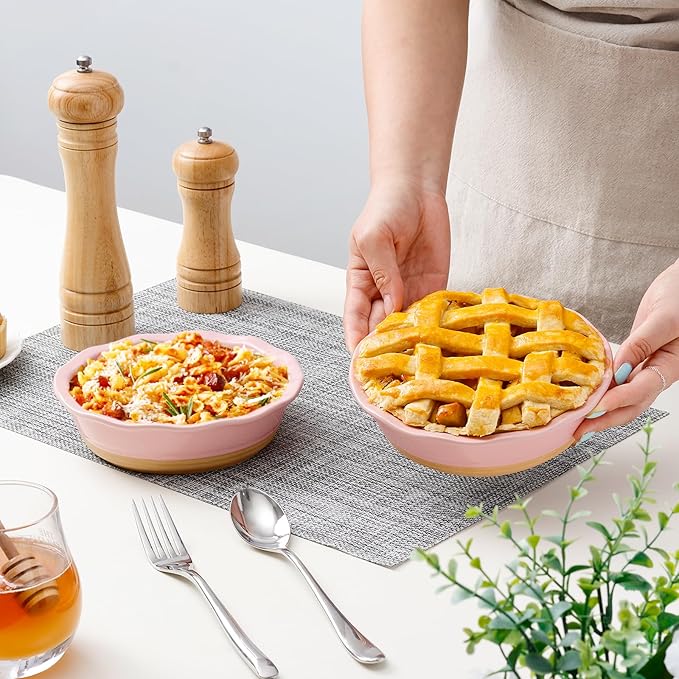 • 🥧Healthy Material🥮: Made of durable and non-porous stoneware, resistant to scratches and stains. Solid and enough, Food grade and lead-free material ensures the thick wall of healthy pie pan. Ceramic and porcelain does not stick as much as metal, longer using life span.