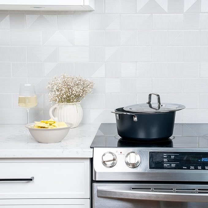 - Value in Every Detail: The contemporary Maestro collection is made from optimal, high performing materials. Our nonstick stock pot reduces the use of oil & ensures easy cleanup. The stainless steel lid with air vent holes allow steam to escape, preventing boiling over and lid rattling. Inner capacity markings help you measure out the right amount, no measuring cup needed. The ceramic coating finishes give you the flexibility to cook whatever you want & the performance you need to cook it better.