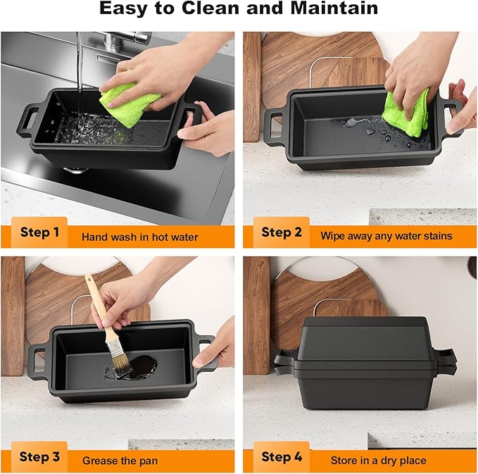 • 【Easy To Maintain】: Season the bread pans with vegetable oil before first use to boost release; they gets easier with use, or use included parchment paper for quicker release and easier cleaning, ensures a naturally non-stick surface. Proper maintenance will make this baking tray a kitchen helper that accompanies you for many years.