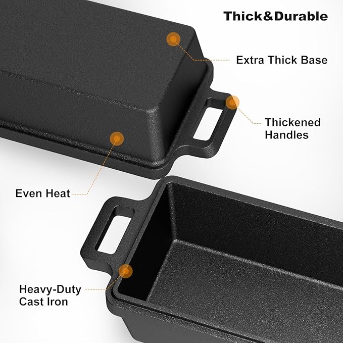 • 【Versatile Cast Iron Loaf Pan】: Designed for discerning home bakers, this cast iron loaf pan with lid is made of high grade cast iron, can delivers the proper heat to bake a perfect homemade sourdough bread or meatloaf. This 9×5 Inch bread pan is suitable for all kitchen ovens, gas stoves, electric stoves, induction cooktops, ranges, and even grills.