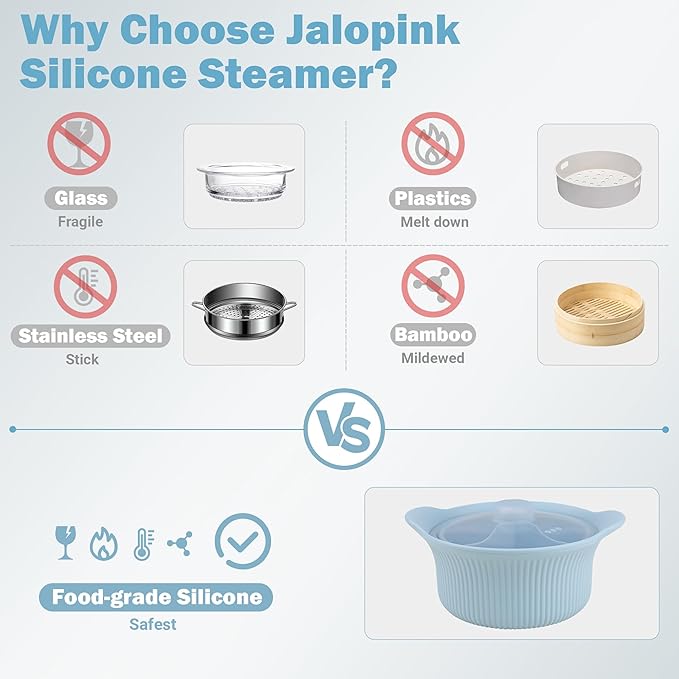 • 【Healthy, Sugar-Conscious Design】 – Promote healthy eating with a steamer that helps reduce fat and sugar retention in food. Made from 100% food-grade silicone, BPA-free, it’s a safe choice for your family’s meals.