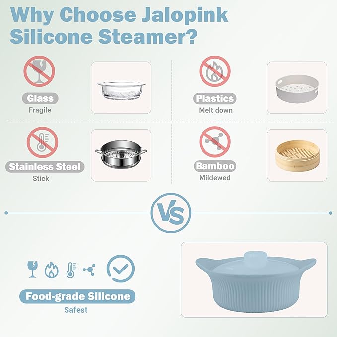 • 【Healthy, Sugar-Conscious Design】 – Promote healthy eating with a steamer that helps reduce fat and sugar retention in food. Made from 100% food-grade silicone, BPA-free, it’s a safe choice for your family’s meals.