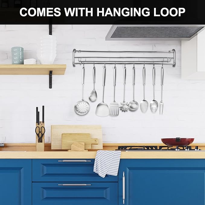 • COMFORTABLE & EASY USE: Our cooking utensils set stainless steel features round, hollow handles that reduce arm strain. The heat-resistant handles keep your hands safe, and the big hanging holes on the stainless steel kitchen utensils set let you store them easily, saving valuable kitchen space​