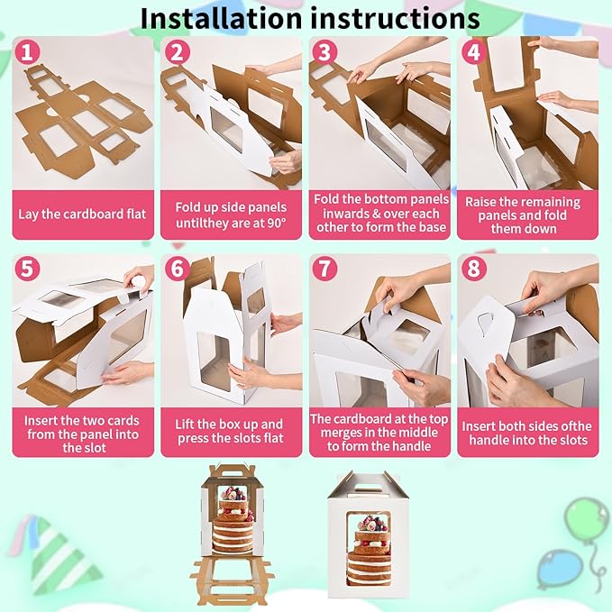 • PACKAGE CONTENTS: Set includes 3 white cake boxes, perfect for bakeries and cake decorators who need reliable transport solutions