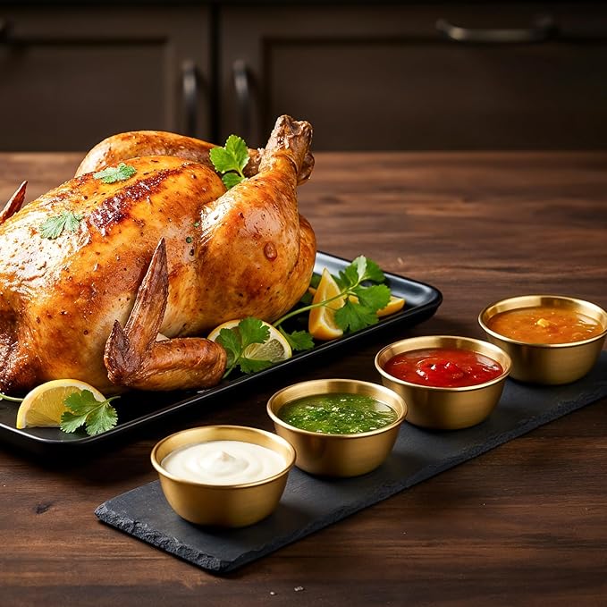 • Sufficient Quantity & Suitable Sizing: This set has 12 golden dipping sauce cups, each 2.36 inches (6cm) in diameter, 1.14 inches (2.9cm) tall, with 2 oz capacity. Made of 304 stainless steel, they meet daily needs at home, restaurants, or gatherings, fitting various sauce-serving scenarios