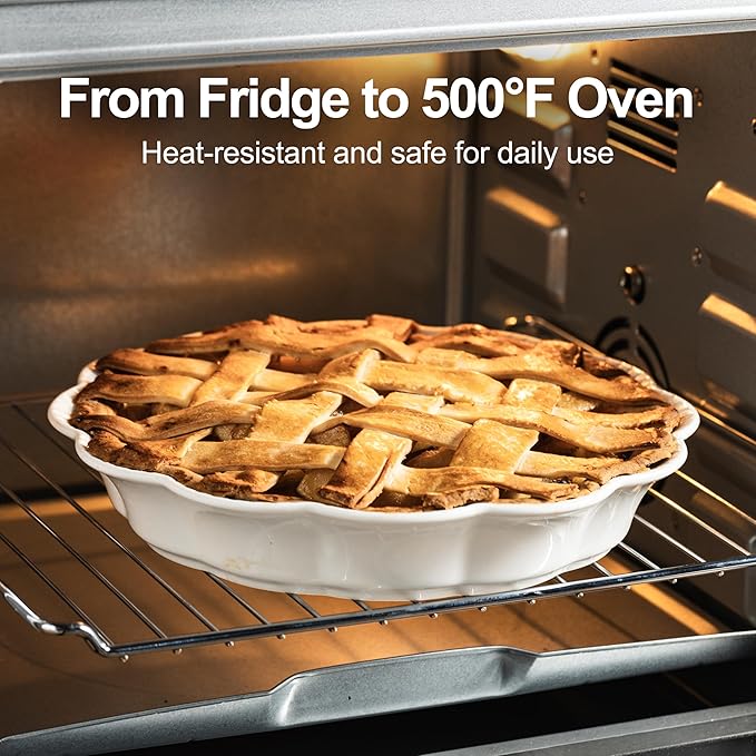 • 【Elegant & Functional Design】The pie plate features beautifully fluted edges that offer a secure grip and prevent slipping. Its smooth glazed surface ensures easy cleaning by hand or dishwasher. Scratch-resistant and durable, this pie pan stays beautiful even after repeated use.