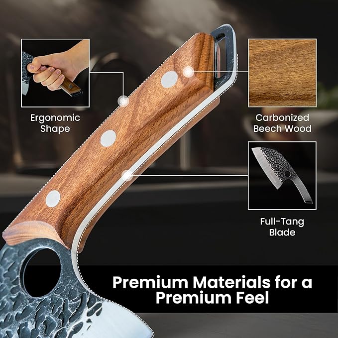• Versatile Meat Cutting Knife – From delicate herbs to heavy ribs, this butcher knife for meat cutting handles every task. A must-have cooking knife for kitchens and BBQs.