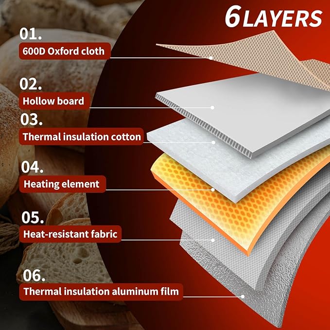 • Super Material: With the combination of various composite materials---6-layer insulated fabric, you don't feel heat from the outside but it still maintained a gentle even warm environment to rise the dough. At the same time, the accessory---the water tray can help to prevent dough dry out.