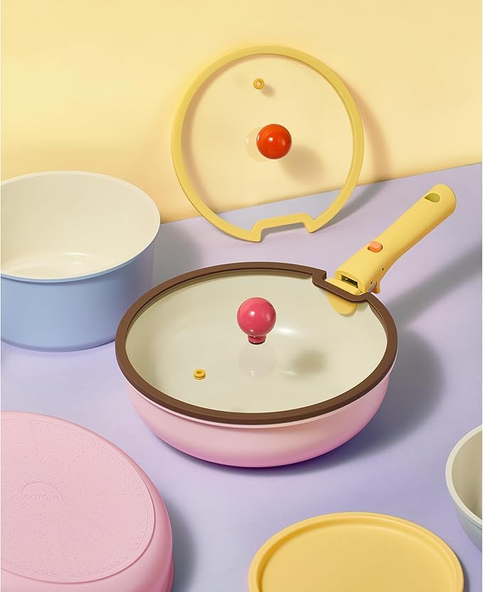 CAROTE 20pcs Ceramic Cookware Set Detachable Handle,Pots and Pans Set Nonstick,Induction Kitchen Cookware with Removable Handle,RV Dishwasher & Oven Safe, PFOA Free