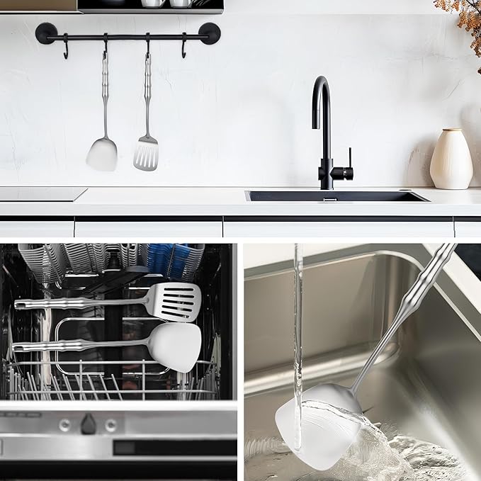 • Food Stainless Steel: Constructed from 18/10 food-grade stainless steel, this metal cooking utensil set is non-toxic, safe, rust-proof, corrosion-resistant, and highly durable, providing peace of mind during cooking.