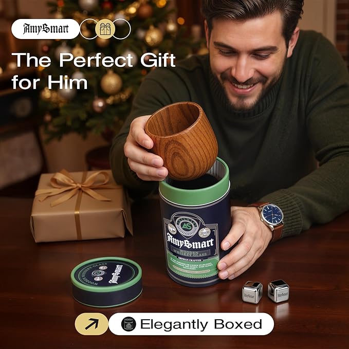 • 🎁The Perfect Gift for Any Occasion – Whether it’s a birthday, anniversary, wedding, Christmas, Father’s Day, or groomsmen celebration, this wooden whiskey glass makes an unforgettable gift for men who appreciate fine drinks.