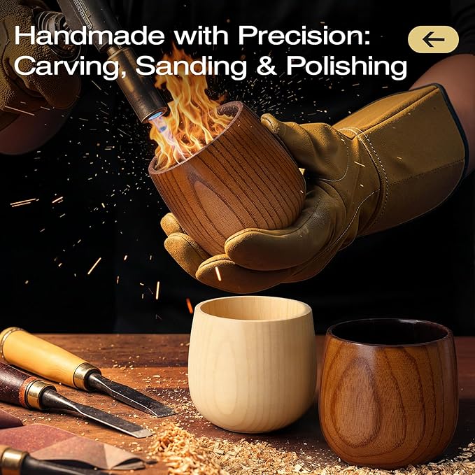 • ✨ Handcrafted & One-of-a-Kind – Each bourbon glass is carved from premium hardwood and finished with a charred interior. No two pieces are identical, making your gift as unique as the person receiving it.
