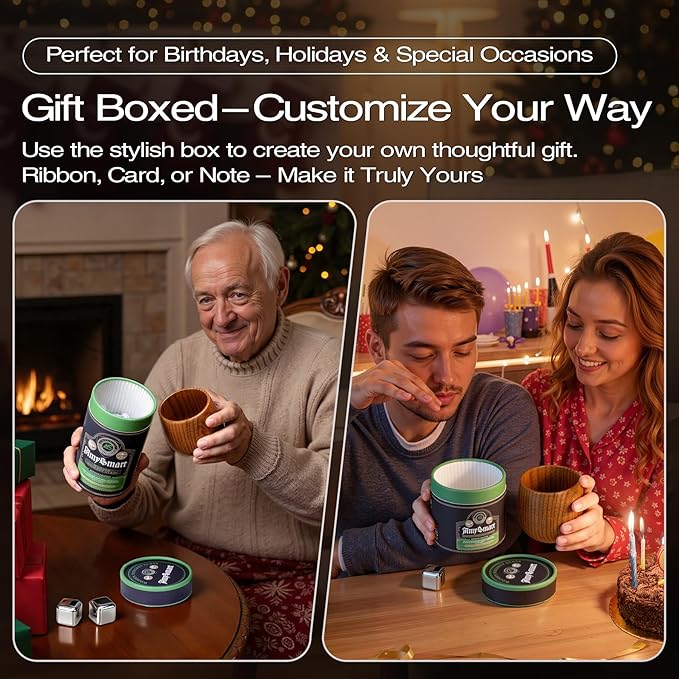 • 🎁The Perfect Gift for Any Occasion – Whether it’s a birthday, anniversary, wedding, Christmas, Father’s Day, or groomsmen celebration, this wooden whiskey glass makes an unforgettable gift for men who appreciate fine drinks.