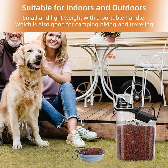 • Collapsible Bowl for Pets:Our dog food storage container is equipped with a high-end foldable pet food bowl. The silicone material is durable and easy to carry, making it a good helper for outings.