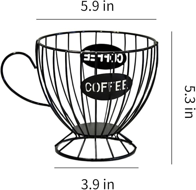 Metal Coffee Pod Holder Wire Coffee Pods Storage Basket Espresso Capsule Storage for Home Kitchen Cafe Hotel (Black cup)