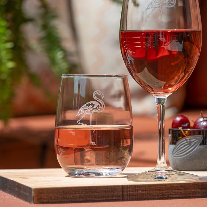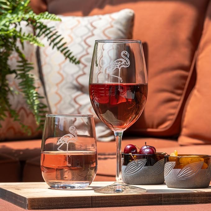 • FLAMINGO DESIGN: Sand-etched with a graceful flamingo motif, these glasses bring a touch of tropical or coastal fun to every sip.
