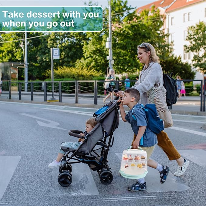 Cake Carrier Round Cake Stand Plus Height Cake Container with Cupcakes Pad, Handle, Lid Reusable Package Box for Transporting Desserts,Pie,Toast,Fruit (10" Black)