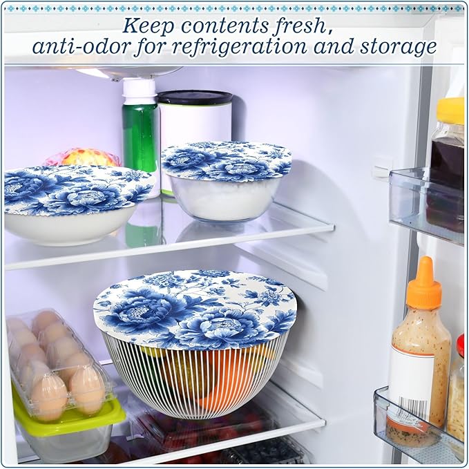 • Use Widely: The elastic bowl covers are perfect for storing leftovers, and fruit salad, making them suitable for picnics, baking, home kitchen, and BBQ's, and the reusable stretch seal lids will not tear and can be applied fridge or freezer for more practicality