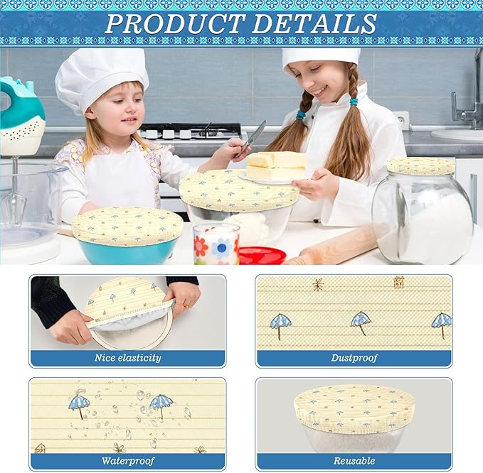 5 Pcs Bowl Covers Reusable in 5 Size Elastic Food Cover Cloth Lids Fresh Keeping Dish Cookware Bakeware Fabric Covers Lids for Food Leftovers Fruits Storage Light Beige Blue Brown Mini Umbr