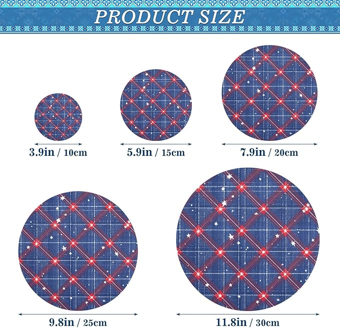 5 Pcs Bowl Covers Reusable in 5 Size Elastic Food Cover Cloth Lids Fresh Keeping Dish Cookware Bakeware Fabric Covers Lids for Food Leftovers Fruits Storage Blue Retro Plaid Stars