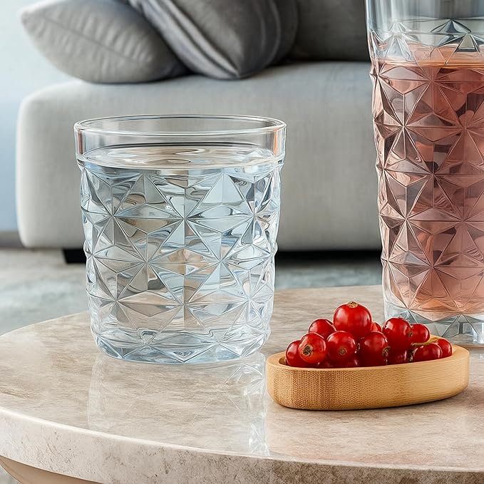 • CRYSTAL DESIGN & DURABLE QUALITY | Made from thick, lead-free glass with a refined crystal pattern, combining durability with luxury; scratch-resistant and dishwasher safe for daily use.