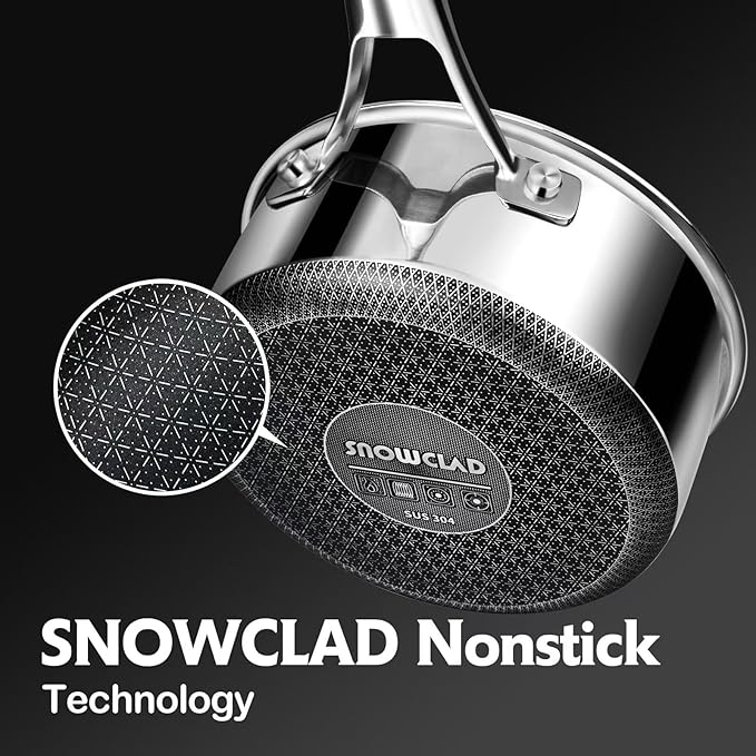 • [SNOWCLAD ENHANCED TECH]: Featuring a cutting-edge enhanced nonstick coating with a snowclad surface design, our non stick frying pans offers longer-lasting, superior non-stick performance. No more worries about peeling or flaking—this set offers exceptional durability and is designed to withstand the use of metal utensils. Additionally, our clad surface is 50% larger than that of typical hex pans.