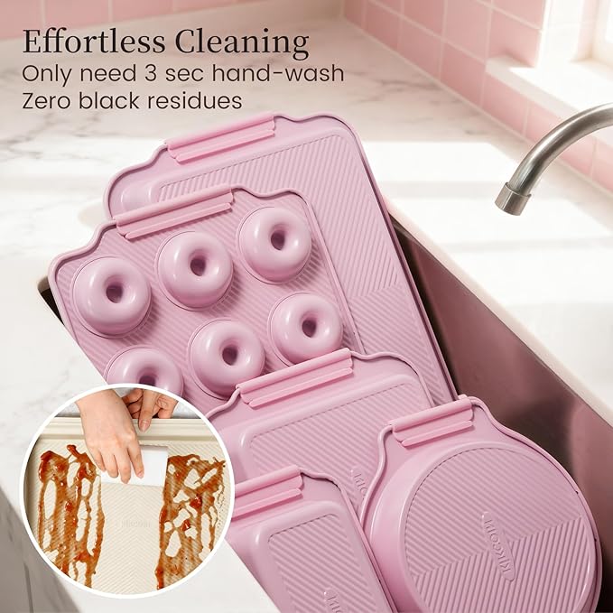 - Advanced Non-Stick Performance—A unique wave-textured base minimizes food-to-pan contact, working synergistically with the premium non-stick coating to prevent stubborn residues. Even sugar-rich foods like honey cookies or jam-filled pastries release smoothly, preserving their shape and beauty