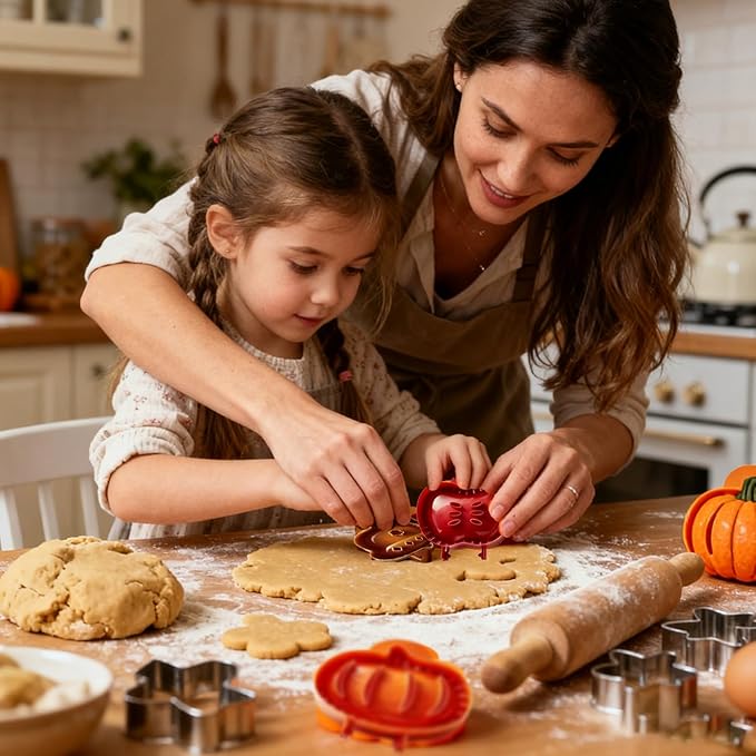 • 【Ideal Gift】: This baking cookie mold set is perfect for fall, Halloween, and Christmas decorations, and makes a thoughtful gift for friends and family