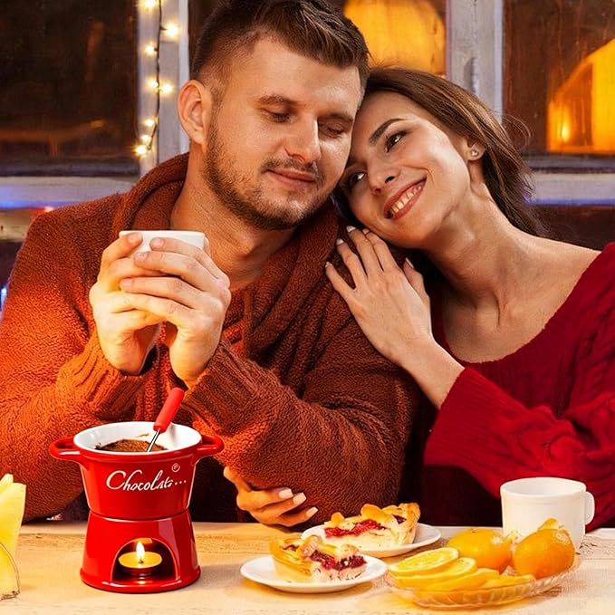 • 【Elegant Ceramic Cup】: Handcrafted from exquisite ceramic, this chocolate melting cup features a vintage-style fork for securely picking up fruit and marshmallows, creating a luxurious dining experience perfect for candlelight dinners and family gatherings