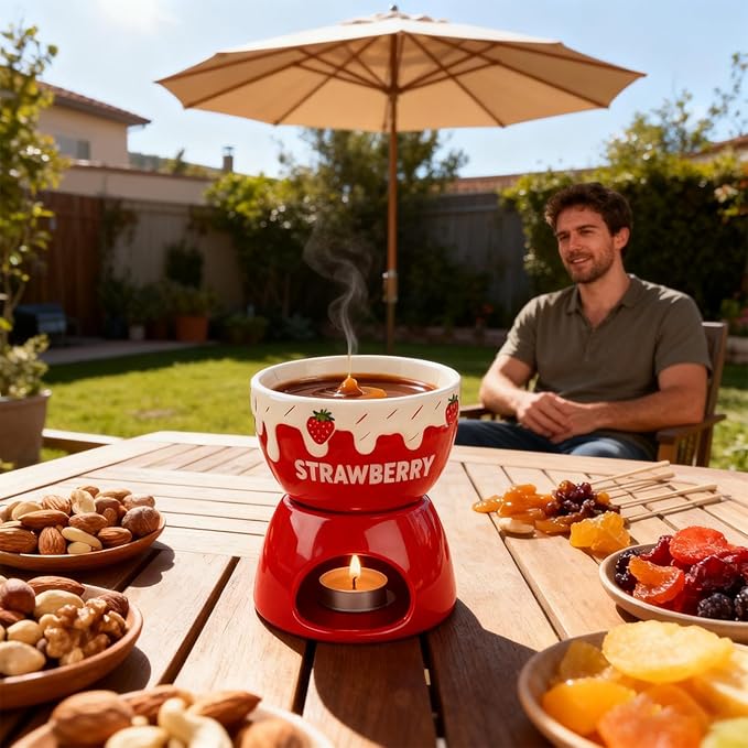 • Durable Ceramic Fondue Cup: The fondue cup is crafted from food-safe ceramic material, ensuring stable cooking performance and high heat resistance for repeated use. Its wear-resistant build supports long-term use, making it ideal for melting cheese or chocolate at gatherings while maintaining safety and reliability in every serving scenario