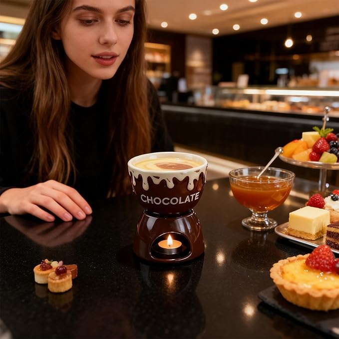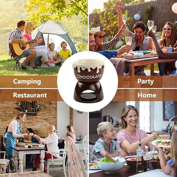 • Durable Ceramic Fondue Cup: The fondue cup is crafted from food-safe ceramic material, ensuring stable cooking performance and high heat resistance for repeated use. Its wear-resistant build supports long-term use, making it ideal for melting cheese or chocolate at gatherings while maintaining safety and reliability in every serving scenario