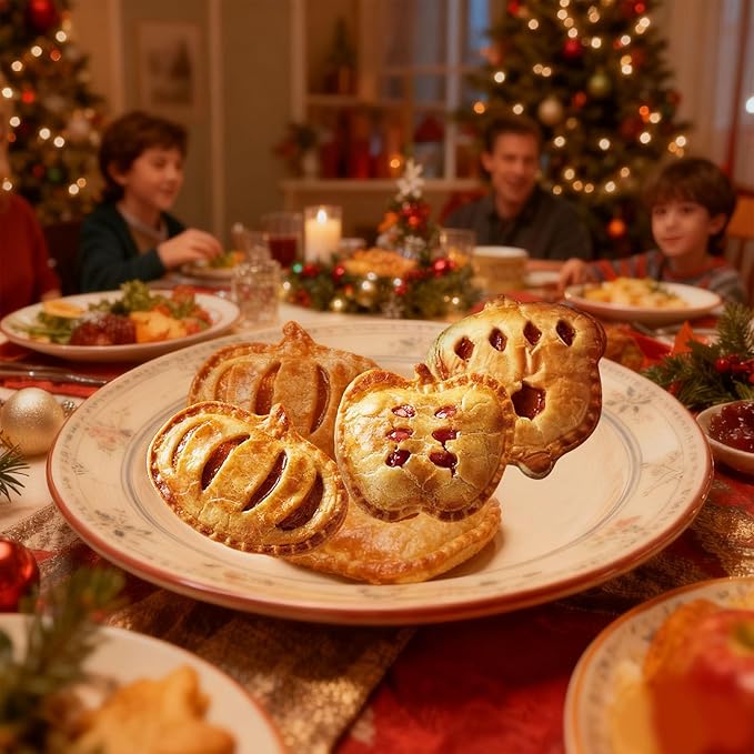 • Festive Variety: Our holiday mini pie mold feature fun and vibrant shapes like apples, Christmas trees, and pumpkins, perfect for creating a festive atmosphere at any gathering or celebration. Ideal holiday baking essentials to elevate your dessert game!